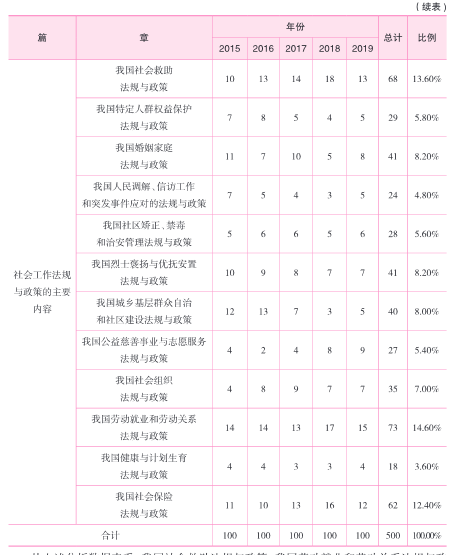 通过分析以往七年的出题情况,我们发现考试的难度在逐年提升;考点较多,且每年都有变化;考试通过难度较大。系统熟记上册“考点精讲”的重点知识,科学练习下册“考点精练”的重点题目,充分把握各个知识点的出题思路是考生备考全国社会工作者职业水平考试的有效方法。我们根据试题的出题规律,整理了近几年考试重点及对应分值的情况,供考生们学习和借鉴。